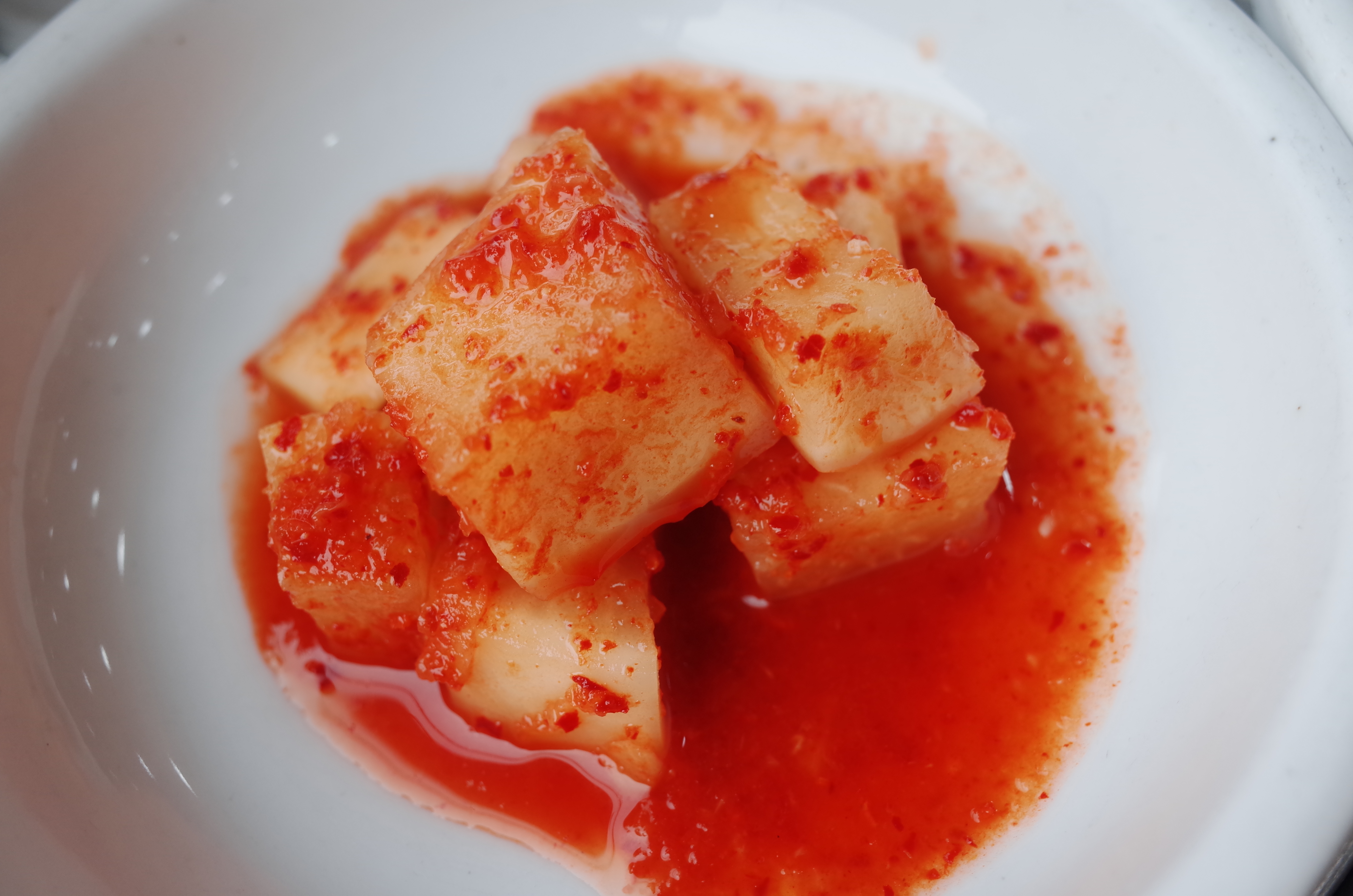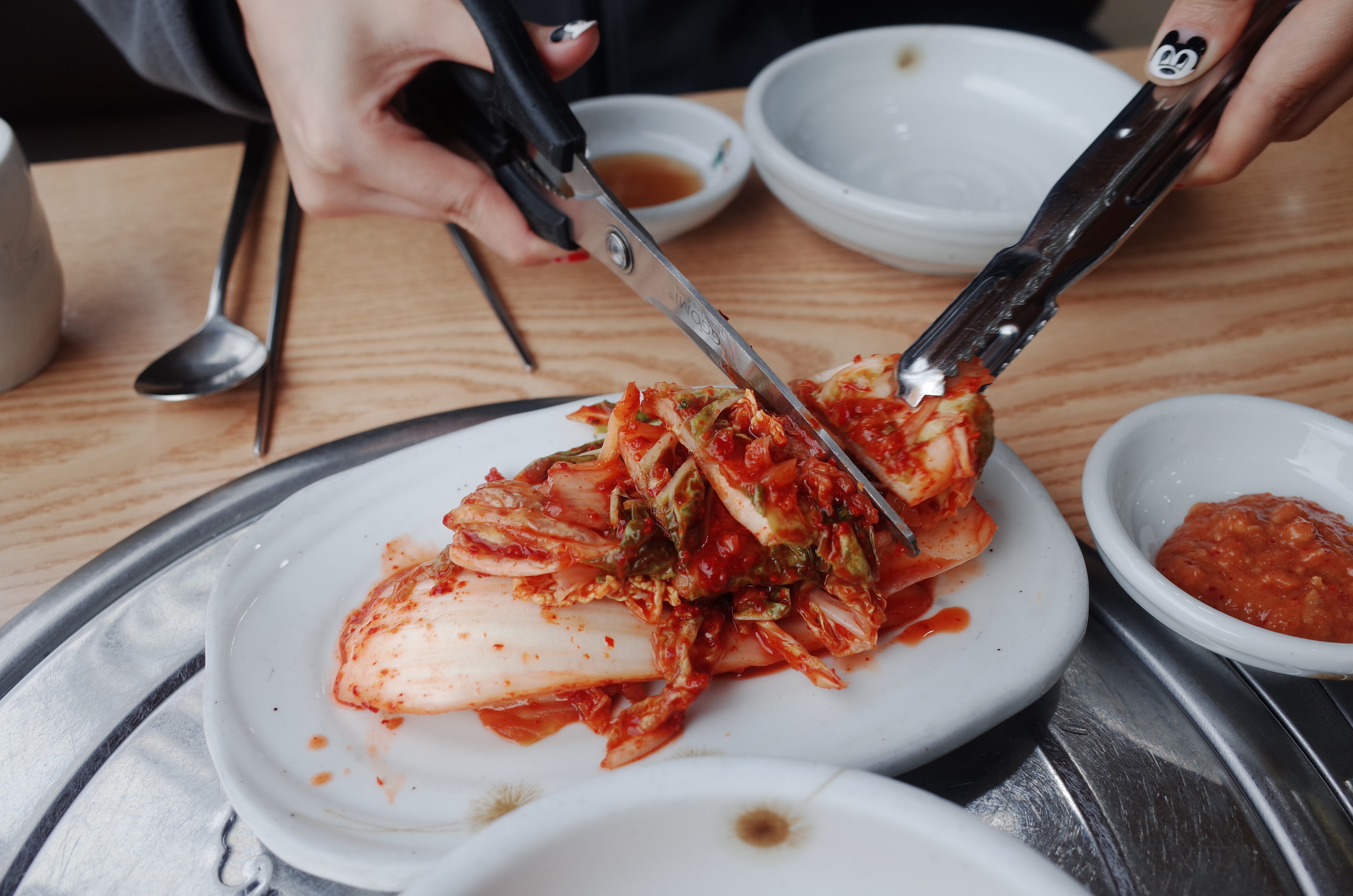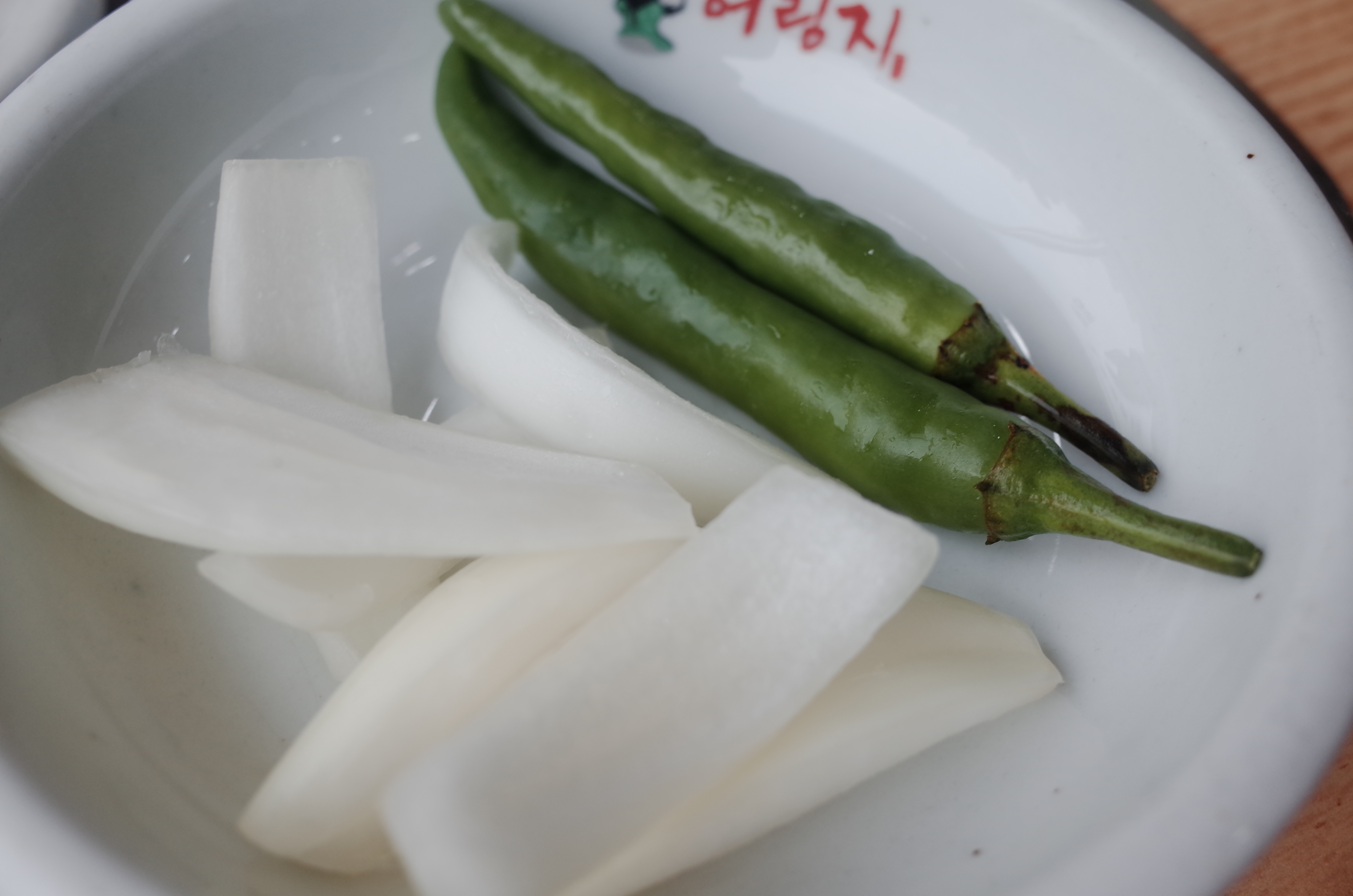 모든 국밥집이나 뼈다귀해장국집에서 나오는 기본 반찬들과 마찬가지로 어림지에서도 기본이 되는 깍두기와 김치를 기본 반찬으로 주신다. 특히나 김치 같은 경우는 편하게 먹기 위해서 나중에 가위로 자르는데, 왠지 가위로 잘라먹으면 더 김치가 맛있을 것 같다는 생각이 든다.