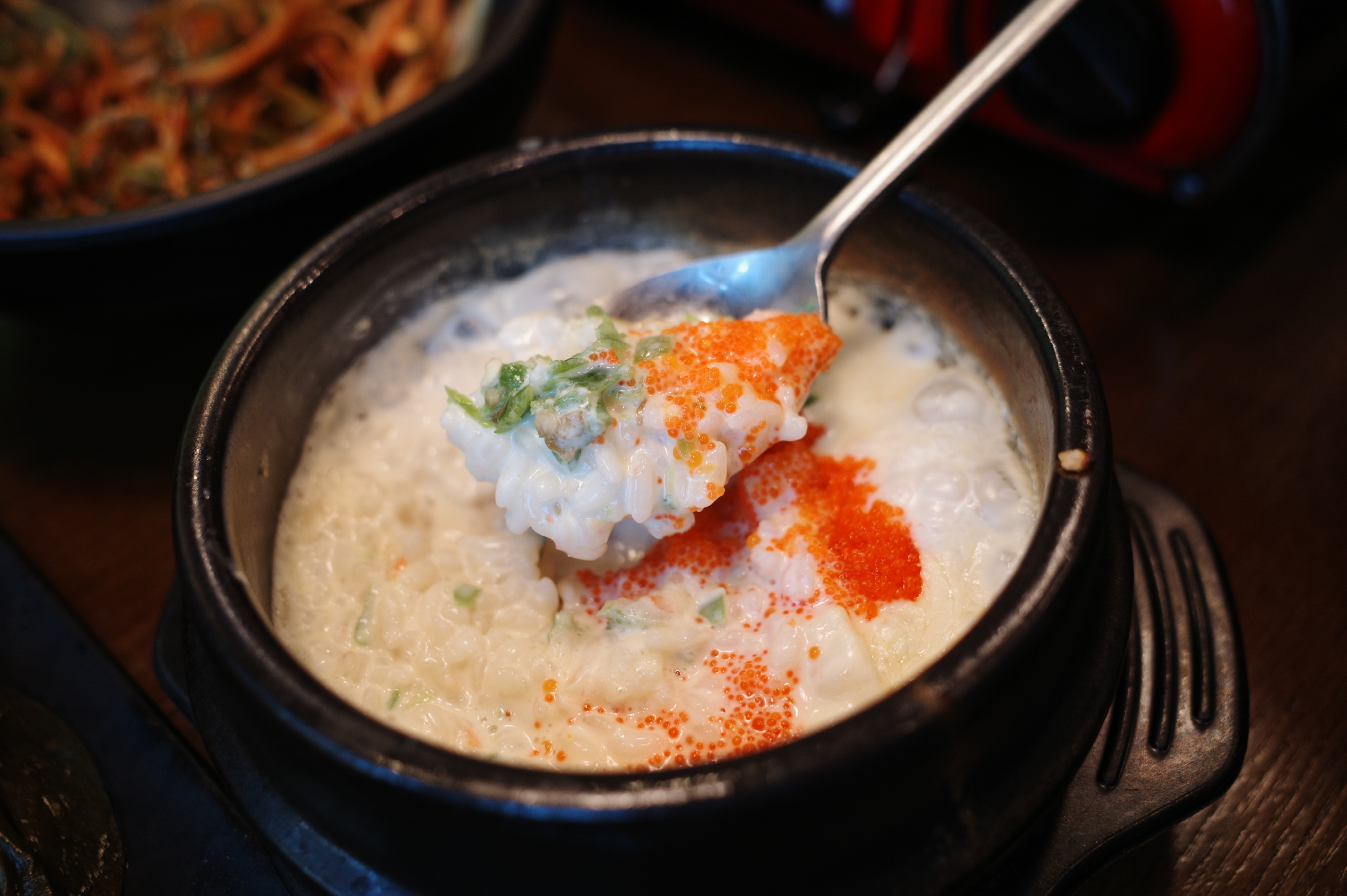 숙달돼지에 오면 무조건 저희는 주문해서 먹는 것이 있는데 그것이 바로 리조또밥입니다. 원래 고기를 다 먹고 밥을 시켜서 먹어야 하는데 여기는 애피타이저로 매번 리조또밥을 시키는 것 같아요. 보기에는 약간 느끼할 수도 있는데요. 먹고 보면 생각이 달라질 겁니다. 매콤함과 느끼함의 조화라고 할까요!?